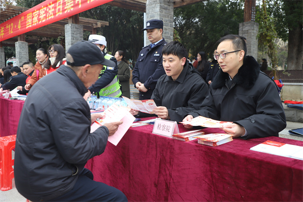 在活动现场,检察干警通过设立咨询台、发放宣传手册、现场讲解等方式,围绕习近平法治思想、宪法精神、全面依法治国成就等重点内容,向群众开展普法宣传,解答法律疑问,积极引导群众增强法治观念,自觉遵守宪法法律。